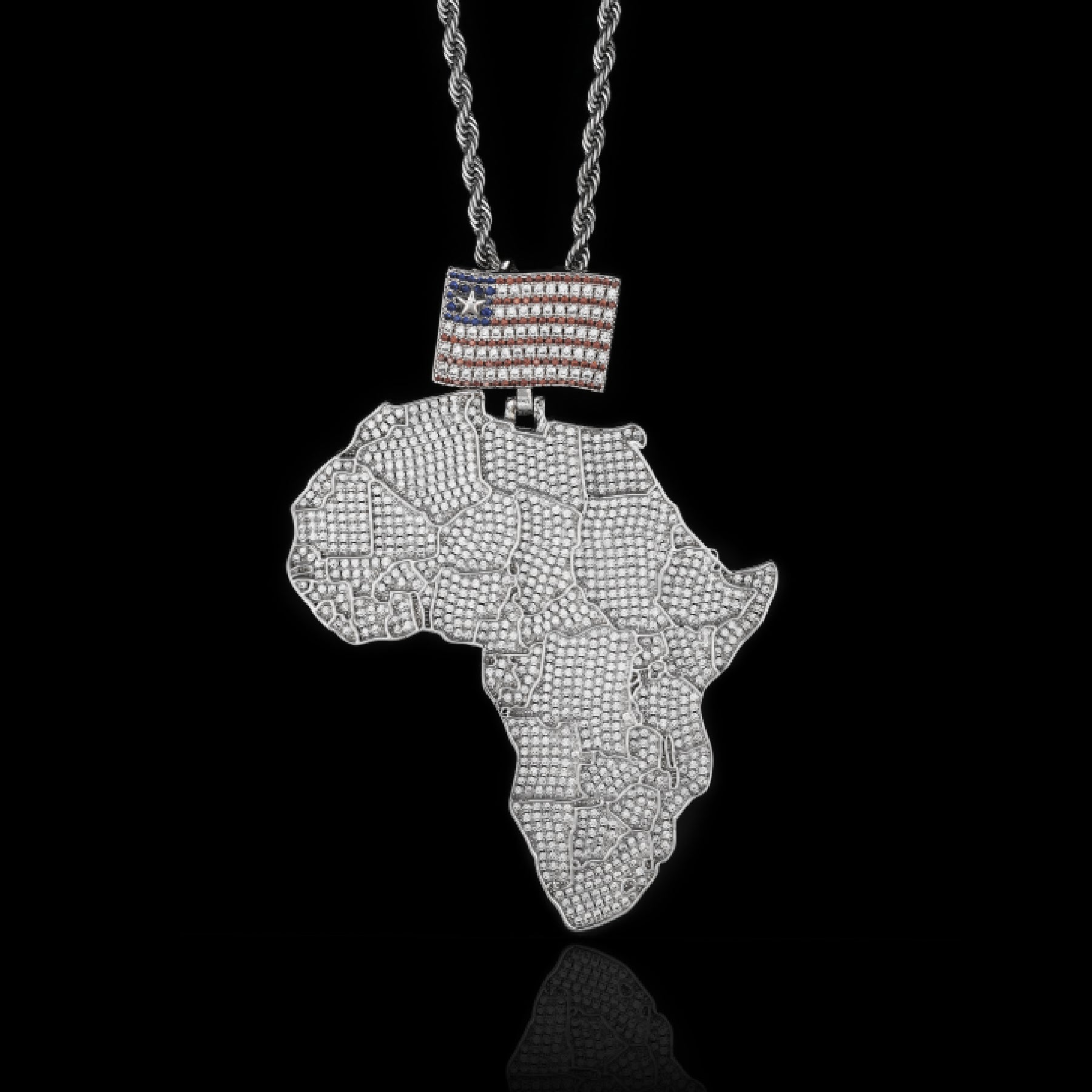 This iced out map pendant adds a touch of luxury to any outfit. Made with high-quality materials, this pendant features a detailed map design and sparkling gems.