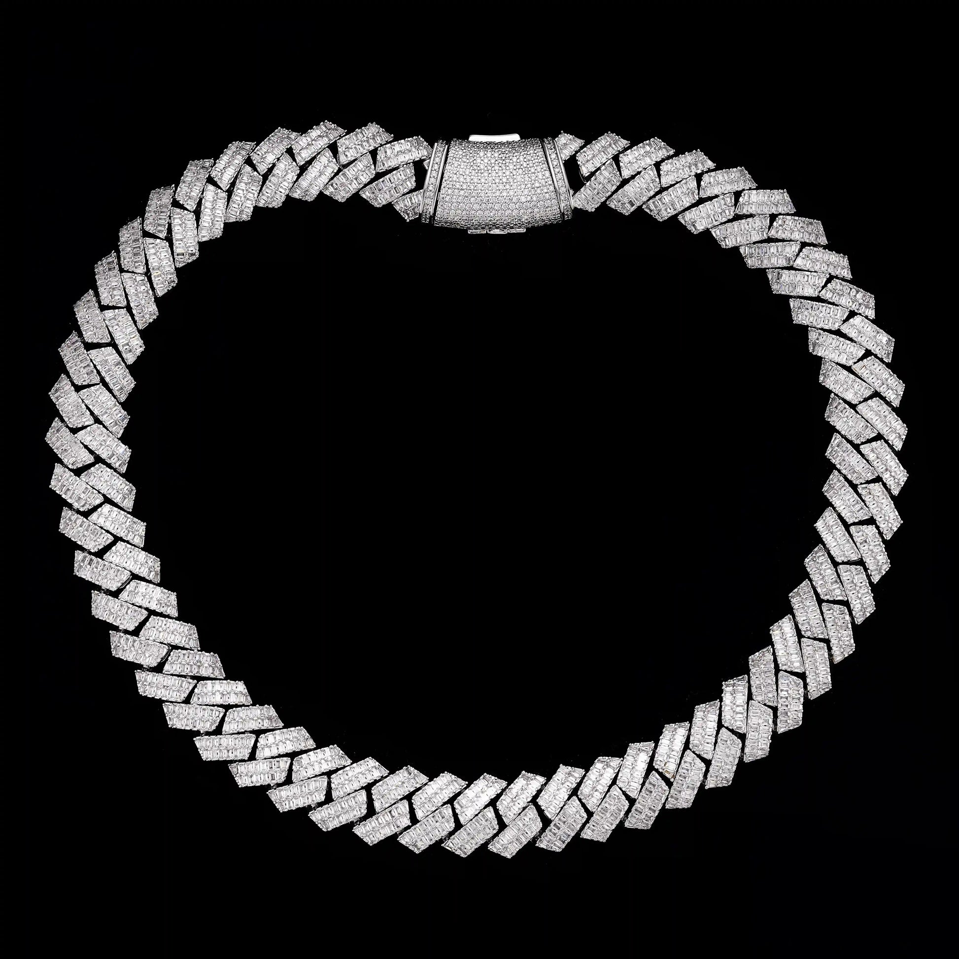 Made of premium S925 Moissanite, this 16MM Cuban Chain features baguette stones set in each prong cuban, luxurious design. A durable and dazzling addition to any jewelry collection. Ideal for lovers of sophisticated and timeless jewelry.