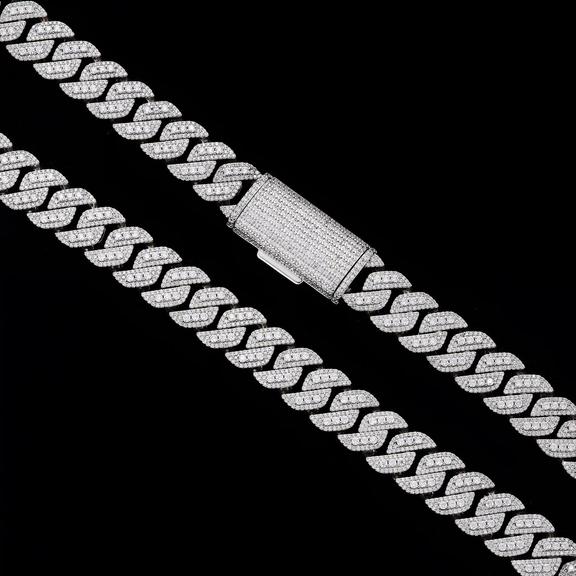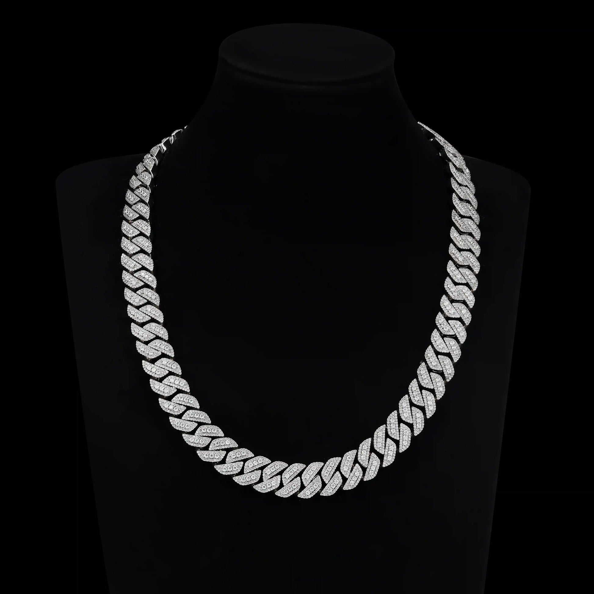 The S925 Moissanite Halo Prong Cuban Chain features a bold Cuban link design, fully iced with sparkling Moissanite stones in a halo prong setting. Crafted from premium S925 sterling silver, it offers maximum shine, durability, and luxury. Perfect for those looking to elevate their style with standout hip-hop jewelry.